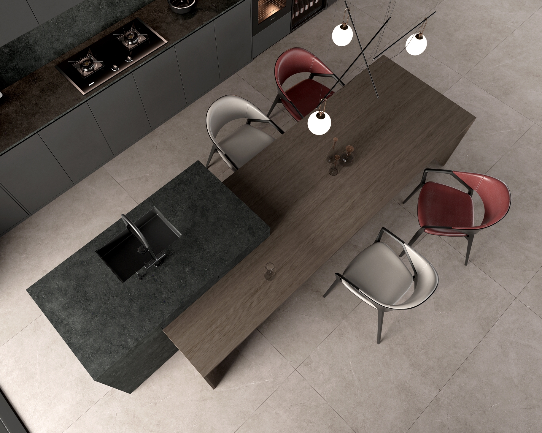 凝固的紋理中蘊涵砂石的涌動跳躍,粗獷而流動自然別有一番璀璨星辰的動態(tài)神韻。黑曜嵐幕巖板,再現(xiàn)宇宙之外的深邃與神秘。與生俱來的霸氣與魅惑,不會因潮流而變化。質(zhì)感非凡,層次豐富,把現(xiàn)代人對自然的渴望融入巖板設(shè)計中,喚醒內(nèi)心最深處的悸動。