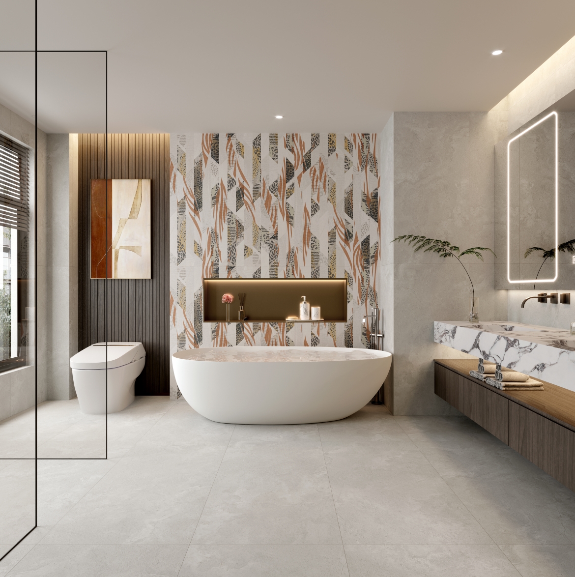 棕櫚樹、豹紋等代表著非洲的獨特印記,通過不規則的設計排列,將狂野與活力鐫刻在磚面上,盡享原生態的自由隨性、野性自然。