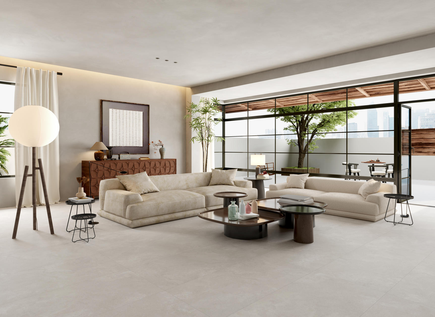 獨特時尚的米杏色調,變幻莫測的漸變紋理流動,彷如歲月的雕琢,給空間帶來連貫、完整、延伸的無垠視界。