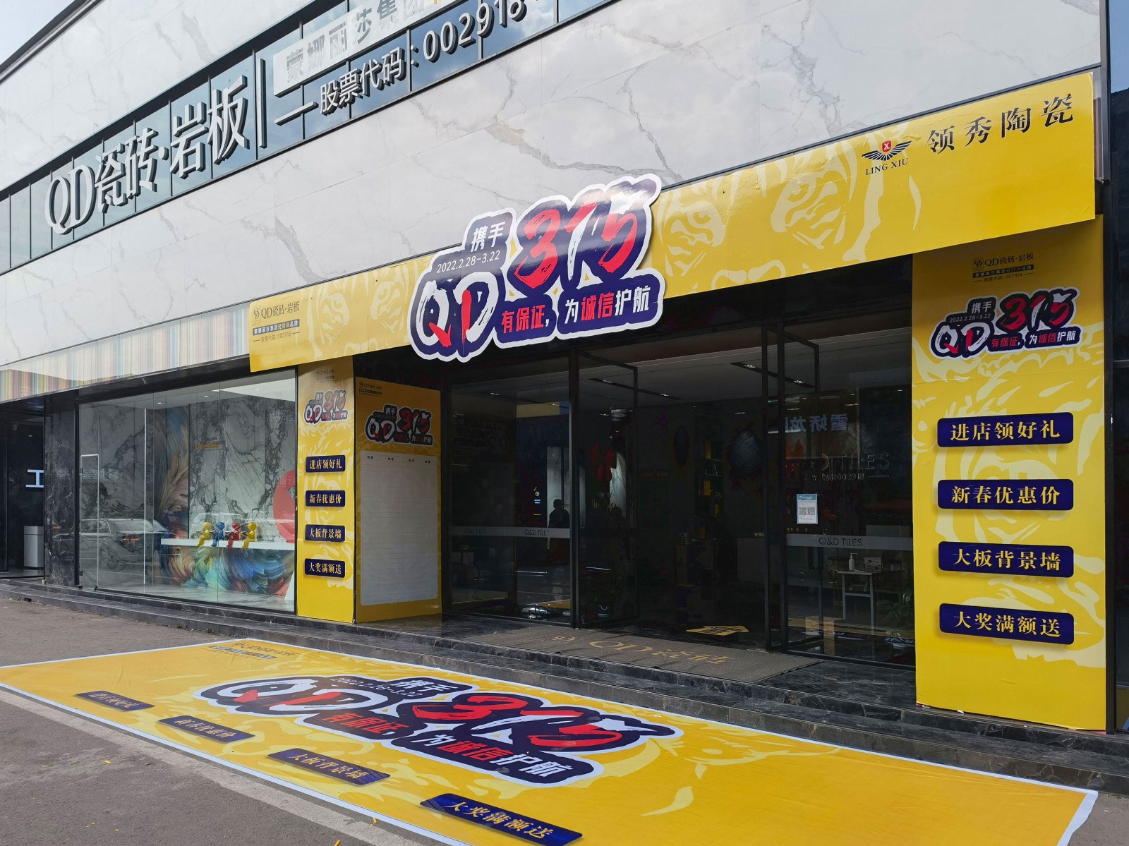 315期間,QD瓷磚多家旗艦店齊聯動,遼寧沈陽、陜西延安、河南洛陽、四川、廣東惠州、浙江寧波、湖北宜昌、唐山豐潤等多城QD瓷磚旗艦店營銷活動全面爆發,啟動2022 年熱銷態勢!QD315品質服務席卷全國!